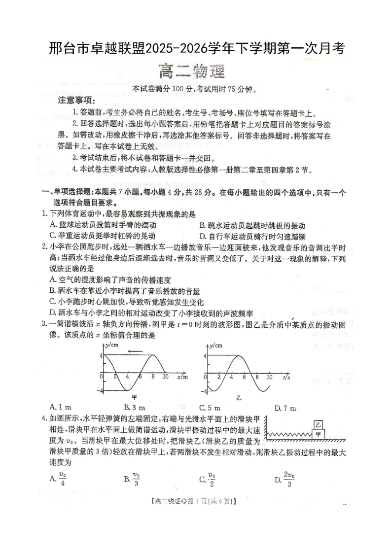河北省邢台市卓越联盟2025-2026学年下学期高二年级第一次月考 物理.docx