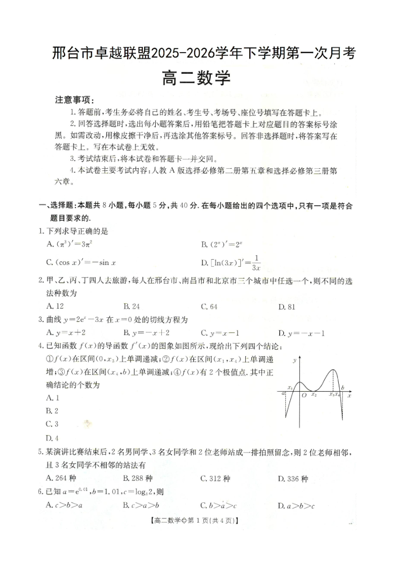 河北省邢台市卓越联盟2025-2026学年下学期高二年级第一次月考 数学.docx