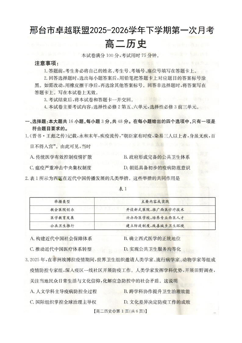 河北省邢台市卓越联盟2025-2026学年下学期高二年级第一次月考 历史.pdf