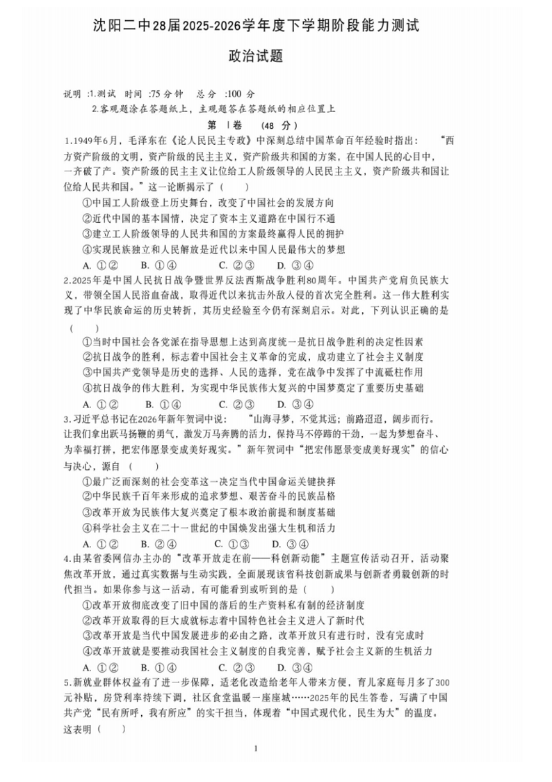 辽宁省沈阳二中2025-2026学年度高一年级下学期阶段能力测试 政治.pdf