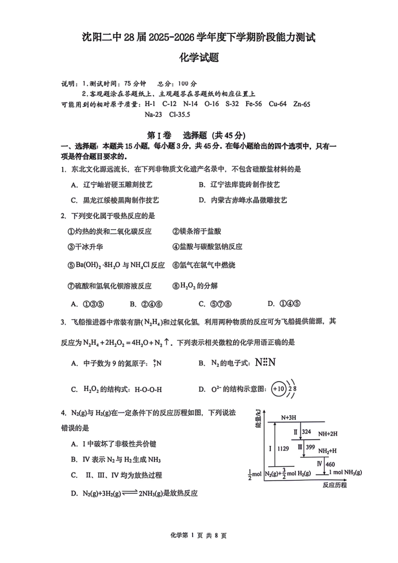 辽宁省沈阳二中2025-2026学年度高一年级下学期阶段能力测试 化学.pdf