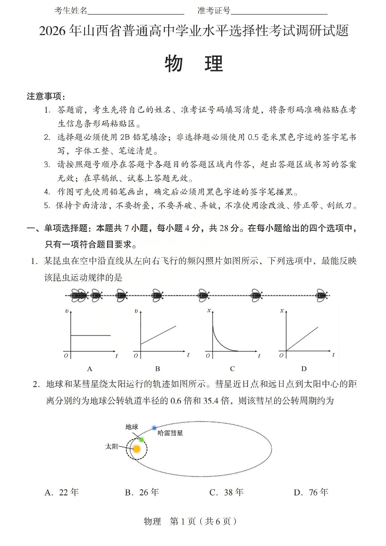 2026年山西省普通高中学业水平选择性考试调研试题 物理.pdf