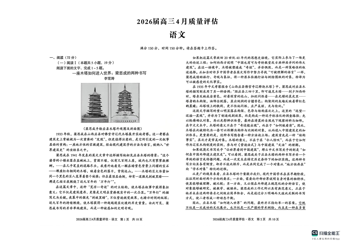 安徽省1号卷A10联盟2026届高三4月质量评估 语文.pdf