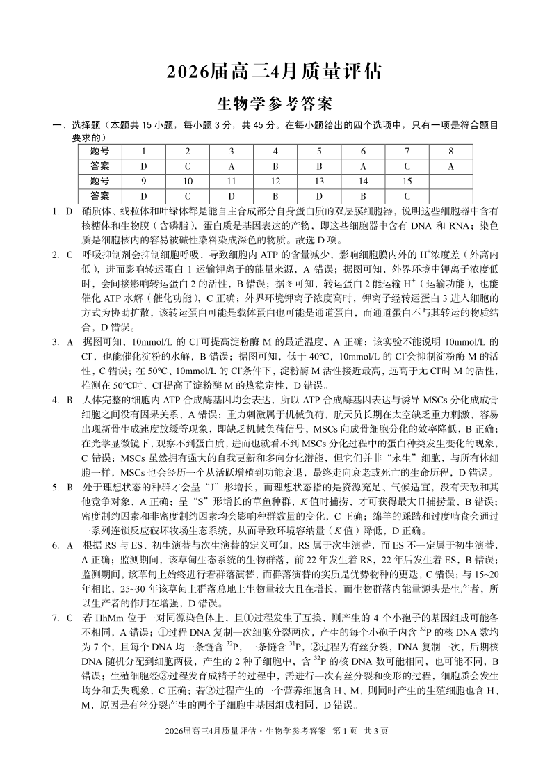 安徽省1号卷A10联盟2026届高三4月质量评估 生物答案.pdf