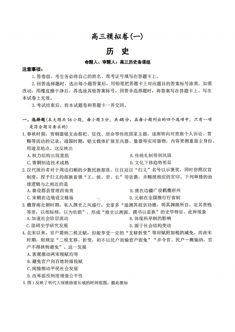 湖南师大附中2026届高三年级模拟卷(一)历史.pdf