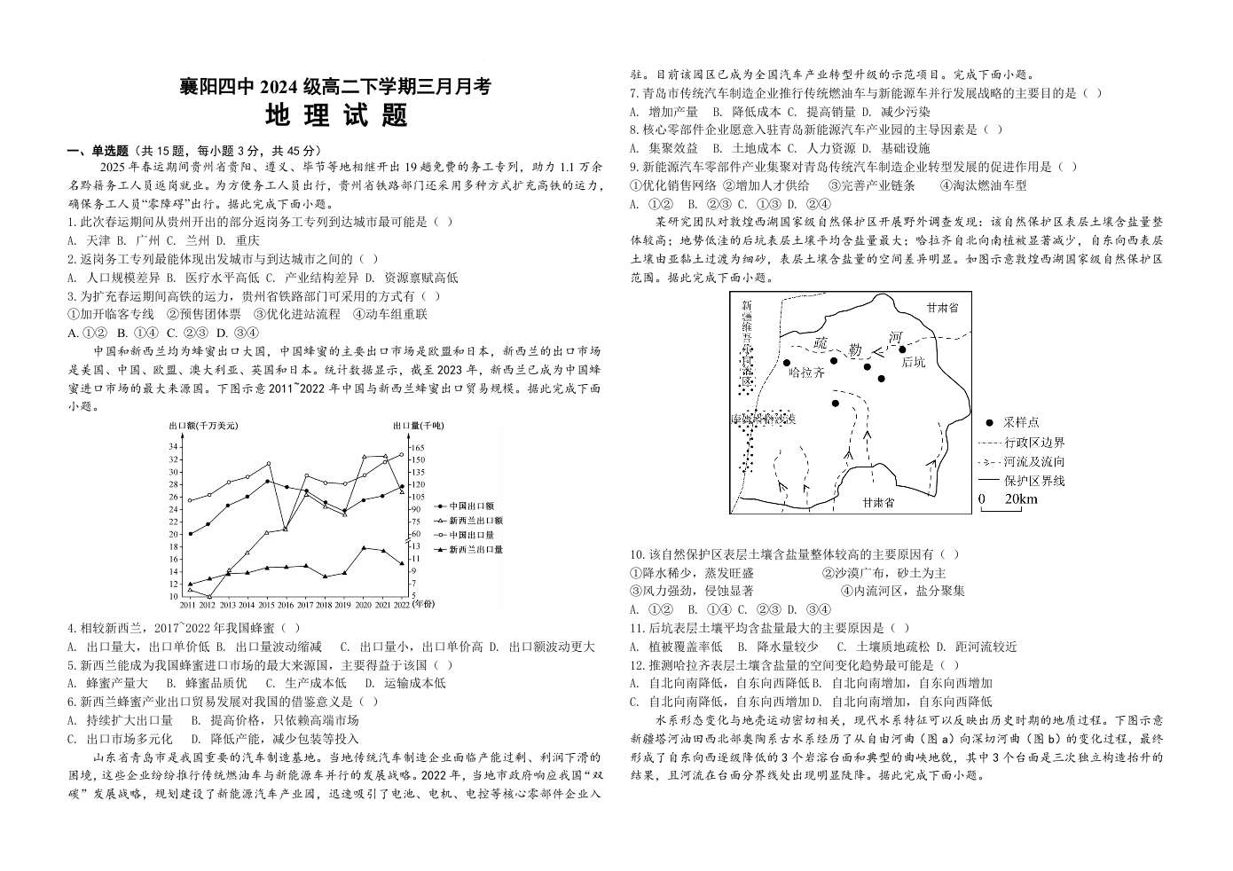 湖北省襄阳市襄阳四中2024级高二下学期三月月考 地理.docx