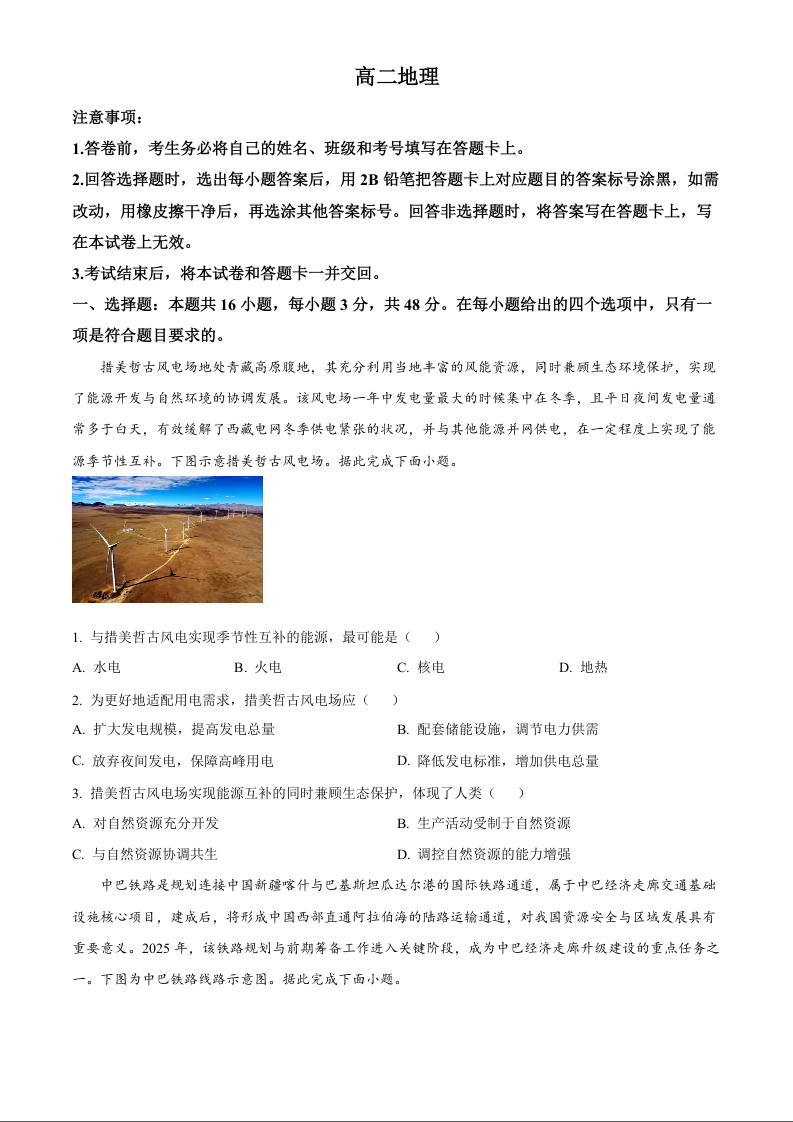 河北省定州中学2025-2026学年高二下学期阶段检测 地理.docx