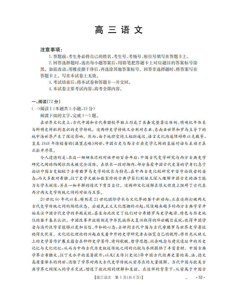 新疆多校2026届高三下学期3月百万大联考 语文.pdf