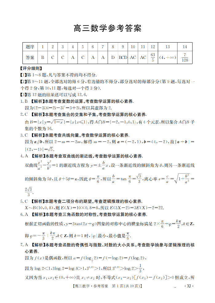 新疆多校2026届高三下学期3月百万大联考 数学答案.pdf