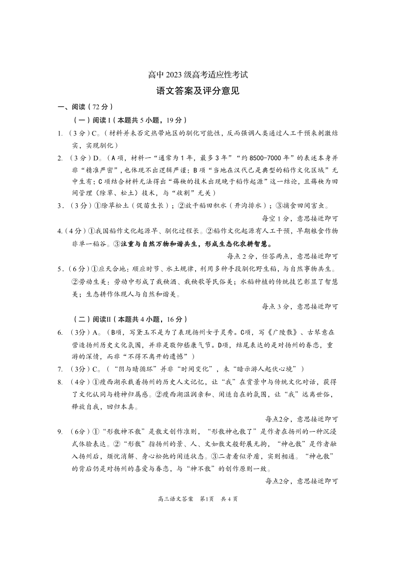 资阳市高中2023级高考适应性考试 语文答案.pdf
