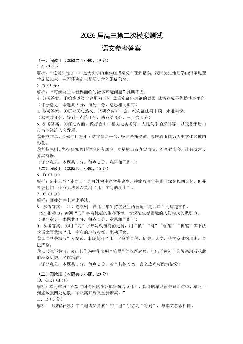 眉山市2026届高三第二次模拟测试 语文答案.pdf