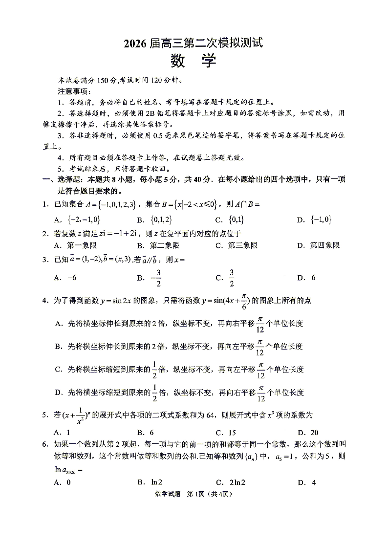 眉山市2026届高三第二次模拟测试 数学.pdf