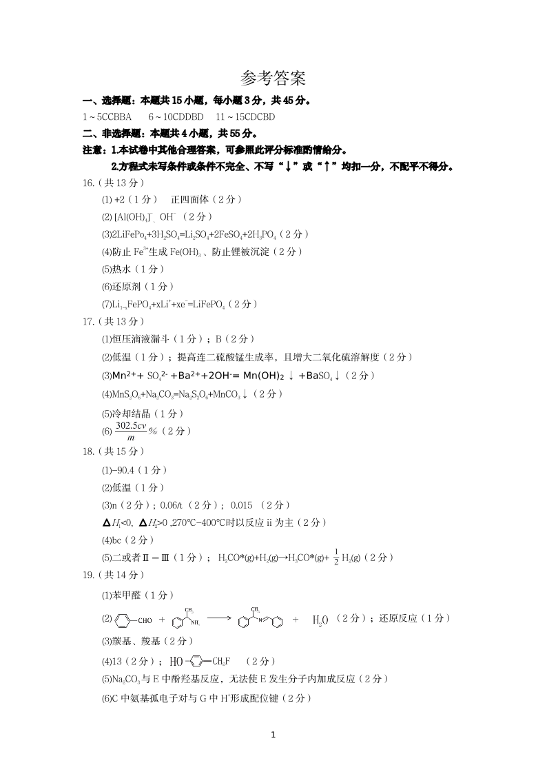 眉山市2026届高三第二次模拟测试 化学答案.pdf