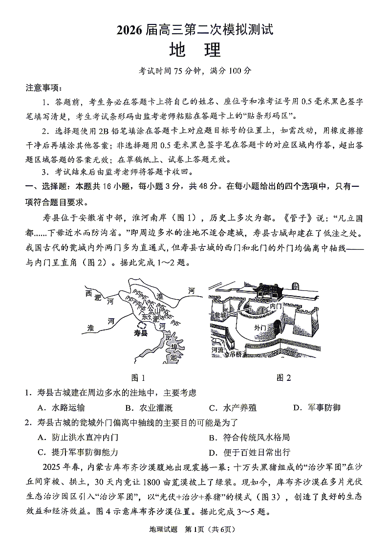 眉山市2026届高三第二次模拟测试 地理.pdf