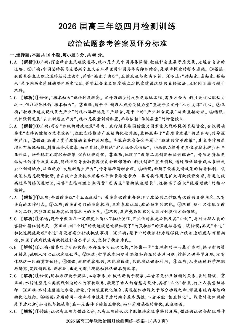 陕西省榆林市2026届高三年级四月检测训练 政治答案.pdf