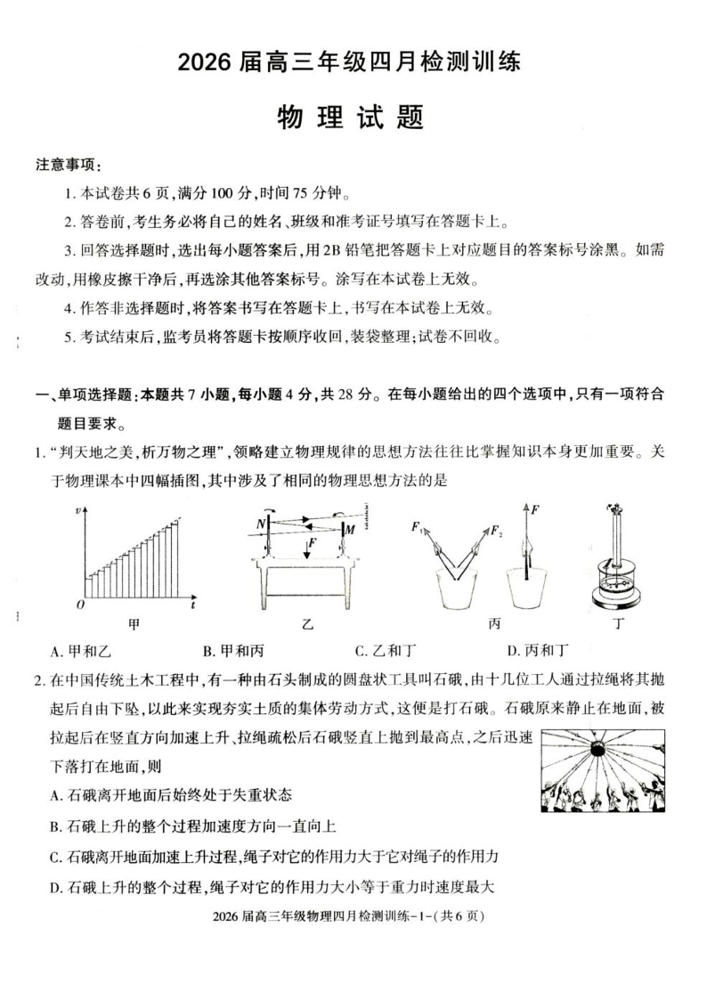 陕西省榆林市2026届高三年级四月检测训练 物理.pdf