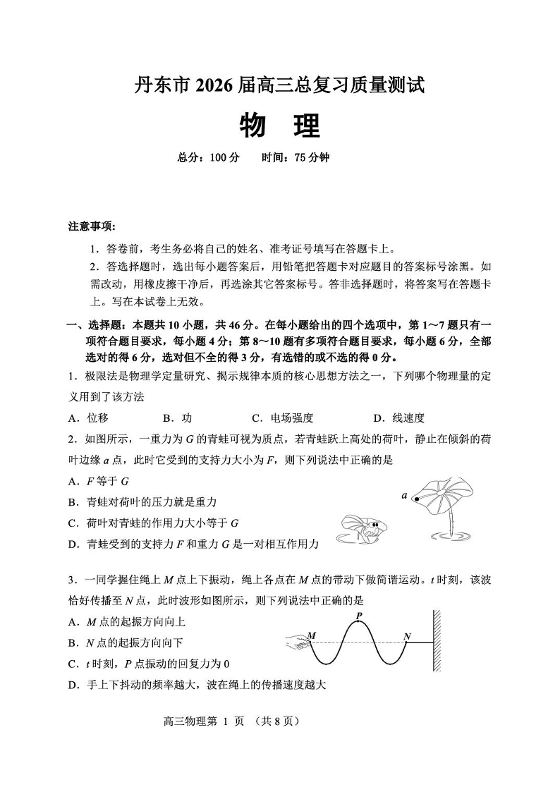 辽宁省丹东市2026届高三年级教学质量监测 物理.pdf