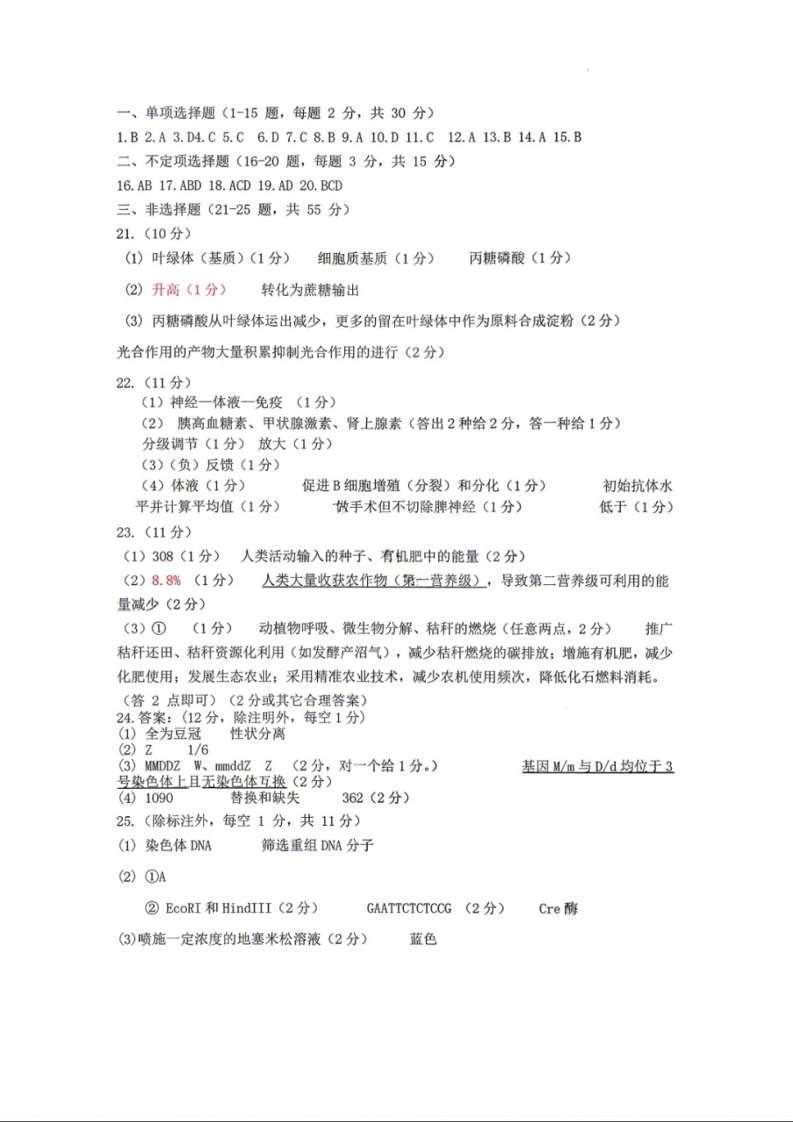 辽宁省丹东市2026届高三年级教学质量监测 生物答案.docx