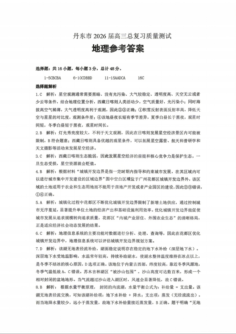 辽宁省丹东市2026届高三年级教学质量监测 地理答案.docx