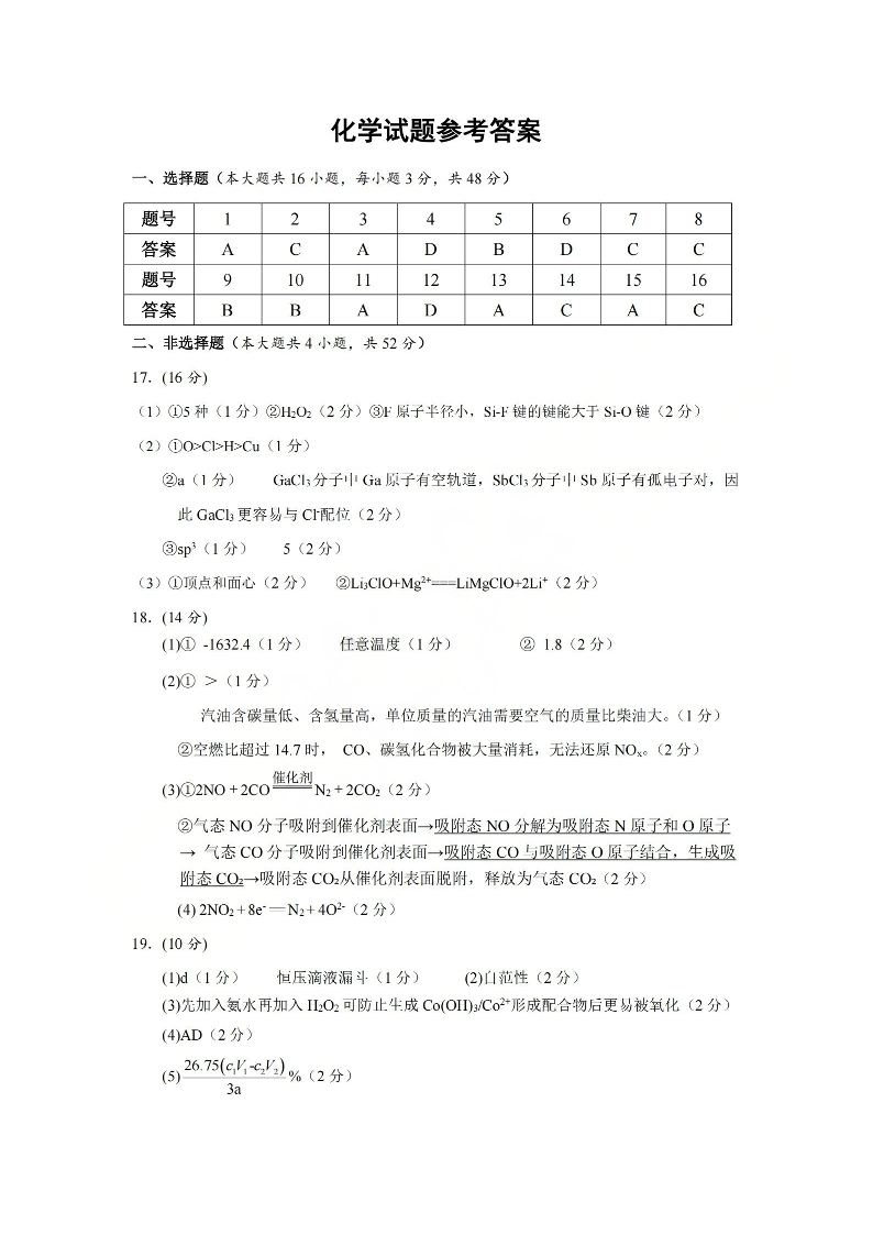 湖州、衢州、丽水2026年4月三地市高三教学质量检测 化学答案.pdf