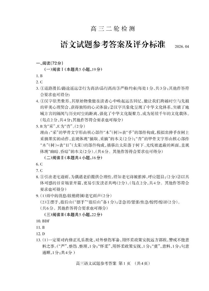 泰安市2026年高三二轮检测 语文答案.pdf