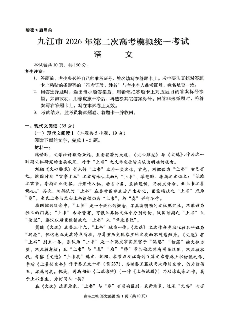 九江市2026年第二次高考模拟统一考试 语文.pdf