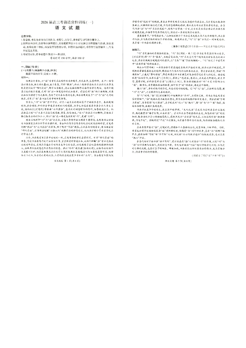 百师联盟2026届高三下学期考前适应性训练(一)语文.pdf