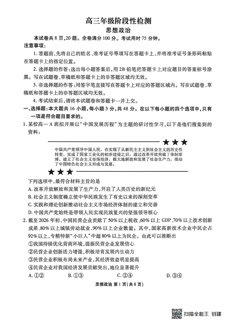 陕西安康市2025-2026学年高三下学期阶段性检测 政治.pdf