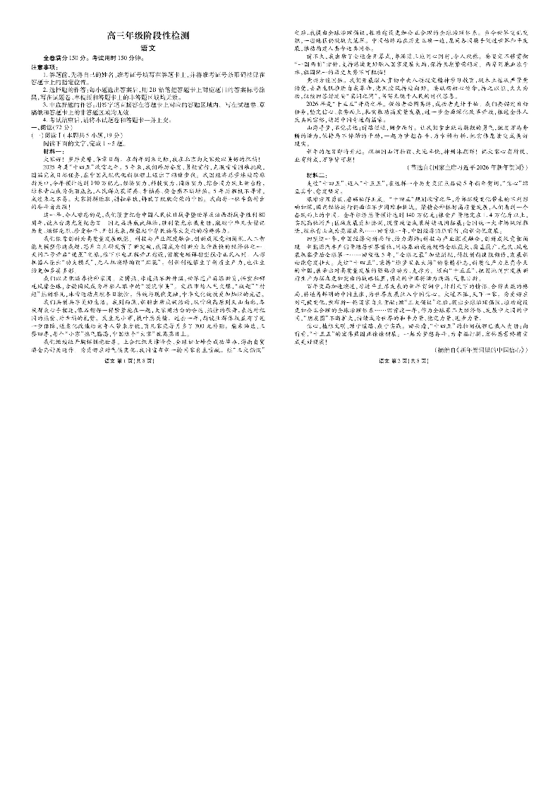 陕西安康市2025-2026学年高三下学期阶段性检测 语文.pdf