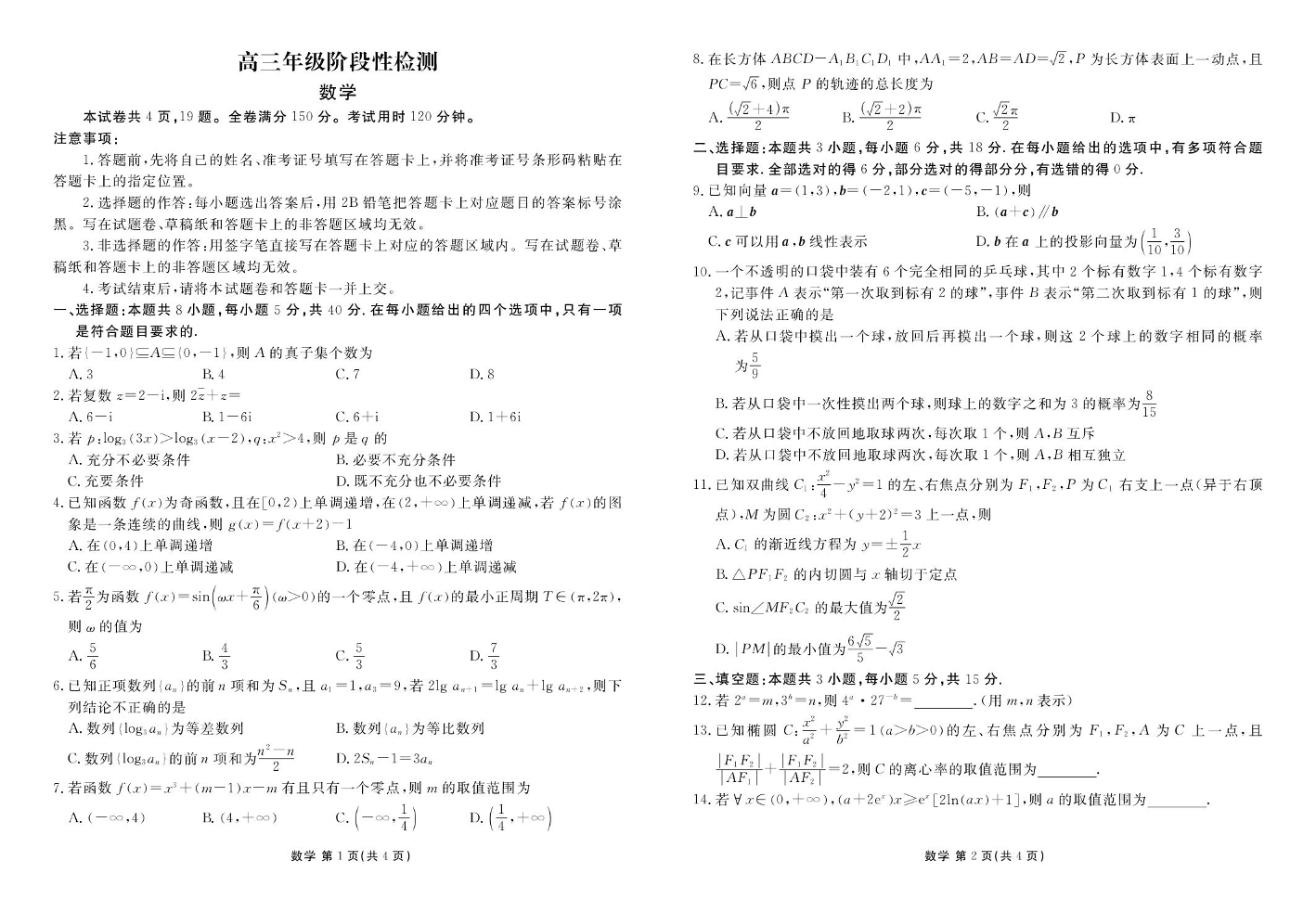 陕西安康市2025-2026学年高三下学期阶段性检测 数学.pdf