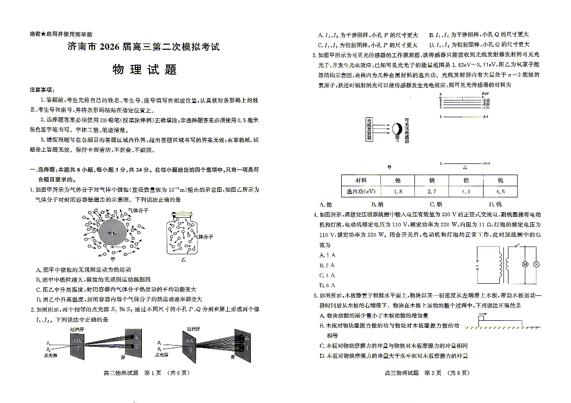 济南市2026届高三第二次模拟考试 物理.pdf