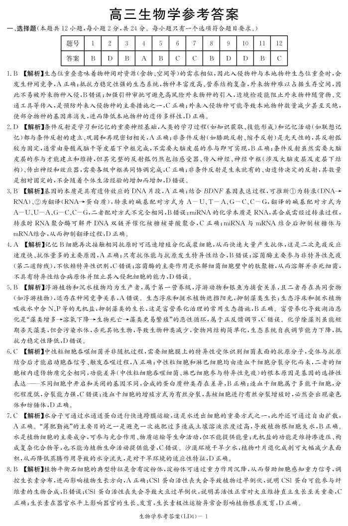 衡阳市2026届高三下学期第二次联考 生物答案.pdf