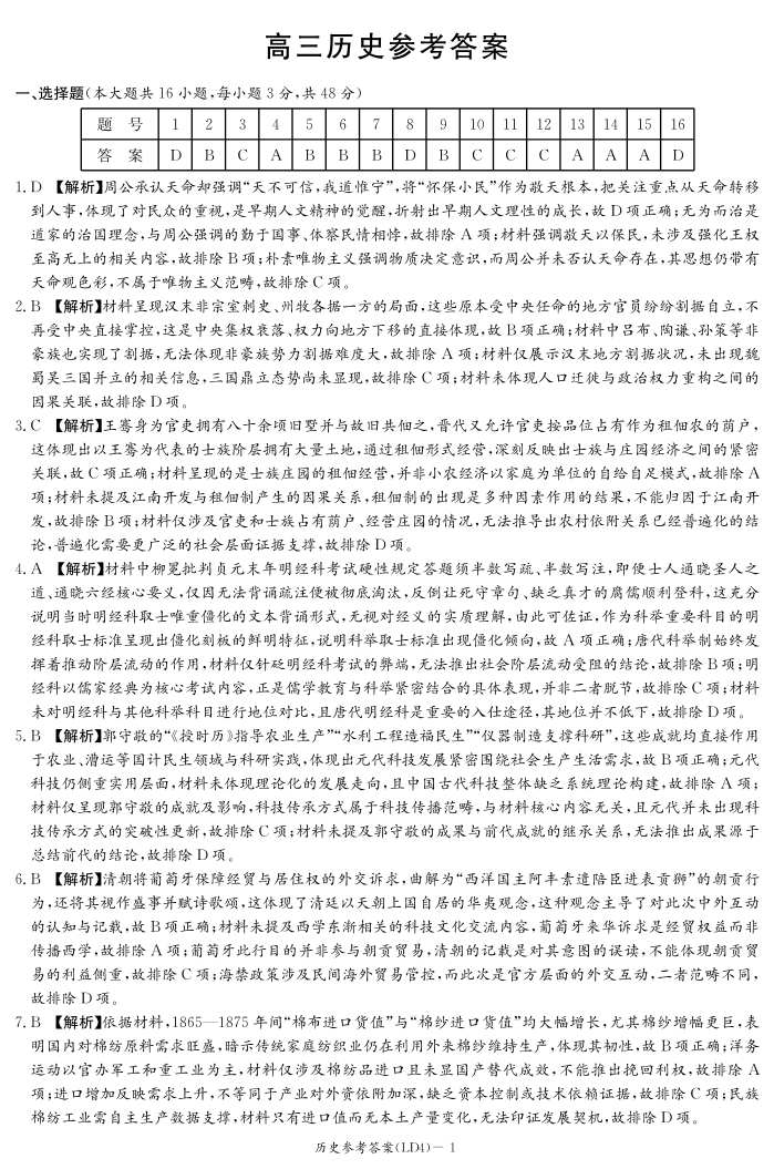 衡阳市2026届高三下学期第二次联考 历史答案.pdf