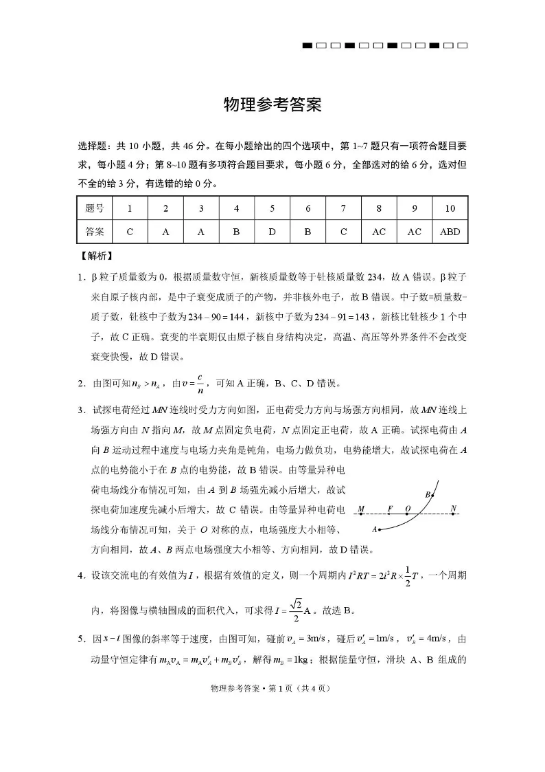 西南名校联盟2026届“3+3+3”高考备考诊断性联考(三)物理答案.pdf