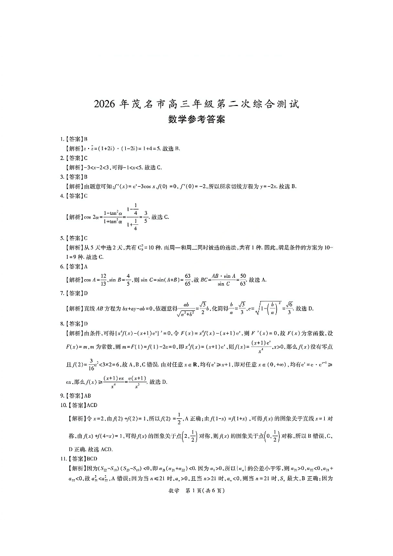 广东省2026年茂名市高三年级第二次综合测试 数学答案.pdf