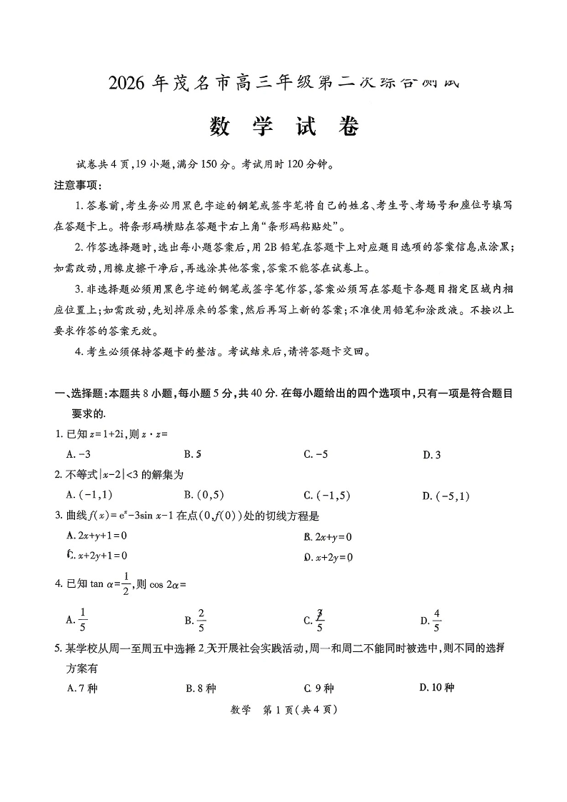 广东省2026年茂名市高三年级第二次综合测试 数学.pdf