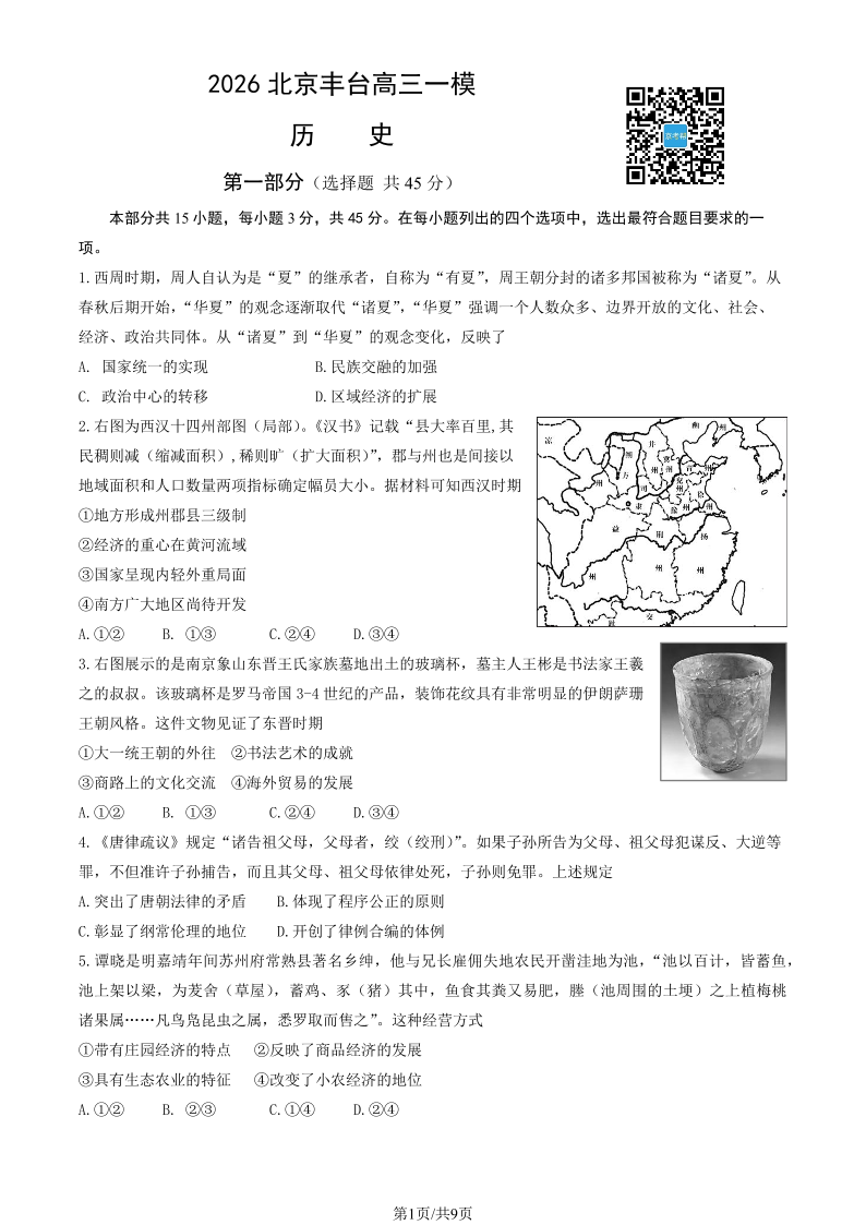 北京市丰台区2025-2026学年度高三年级第二学期综合练习(一)历史试题(含答案).pdf
