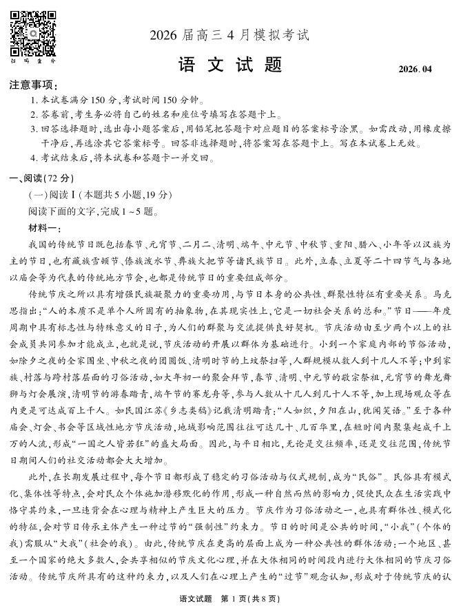 2026届高三4月模拟考试 语文.pdf