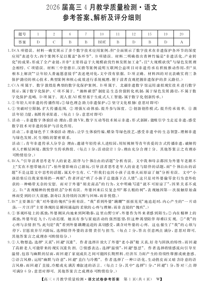 皖南八校2026届高三4月教学质量检测 语文答案.pdf