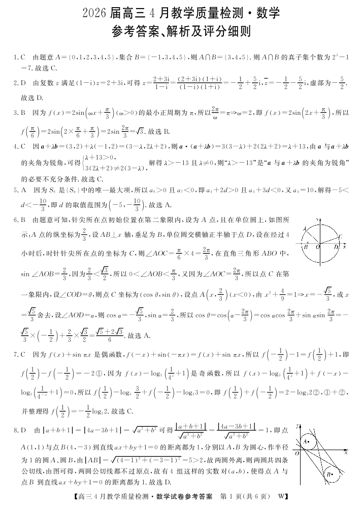 皖南八校2026届高三4月教学质量检测 数学答案.pdf