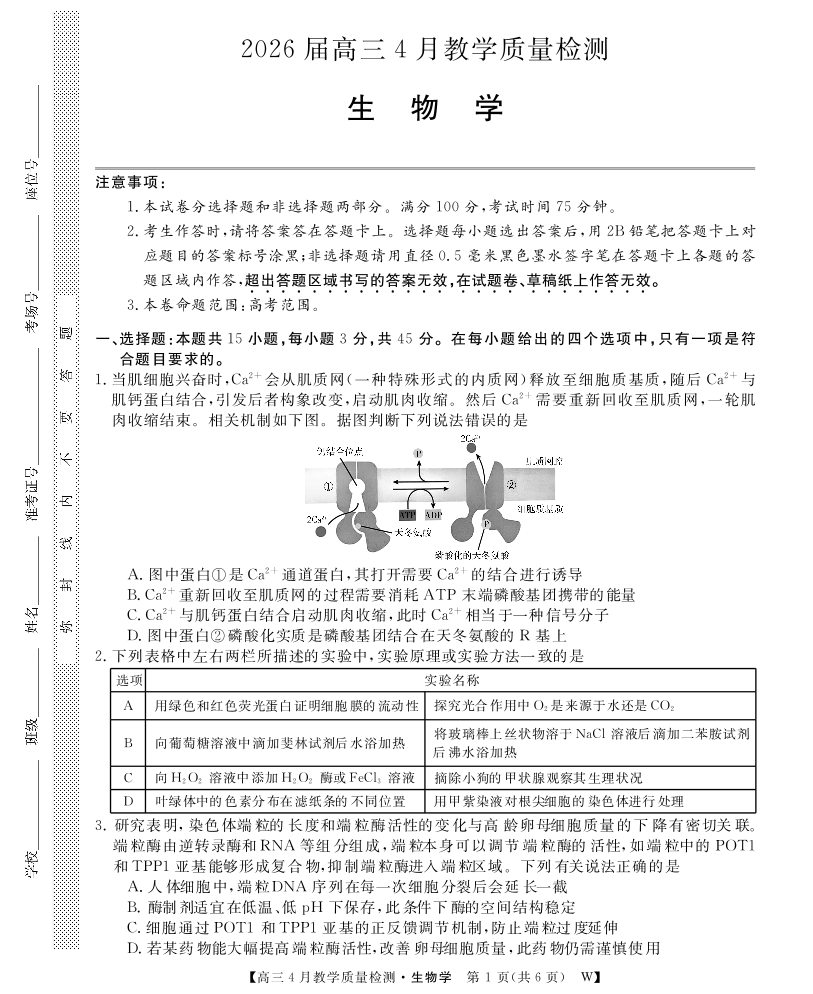 皖南八校2026届高三4月教学质量检测 生物.pdf