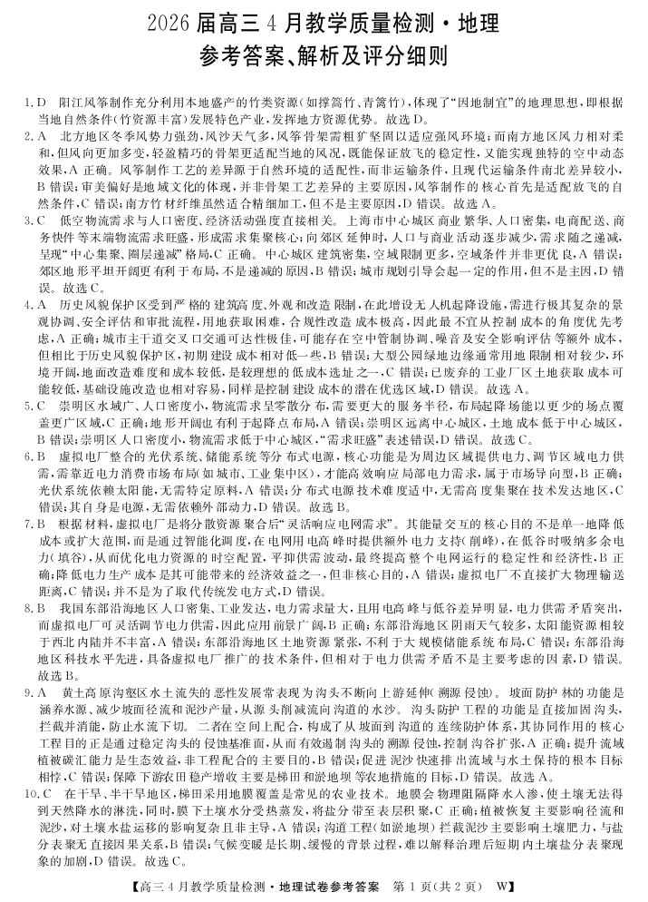 皖南八校2026届高三4月教学质量检测 地理答案.pdf