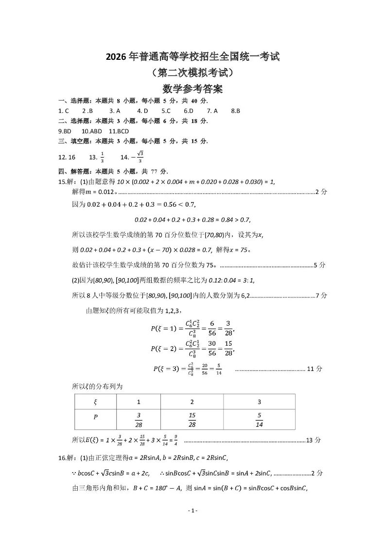 包头市2026届高三下学期二模考试 数学答案.pdf