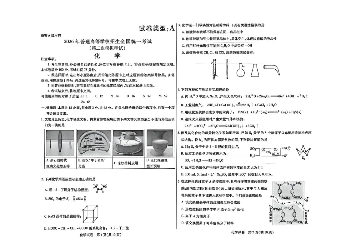 包头市2026届高三下学期二模考试 化学.pdf