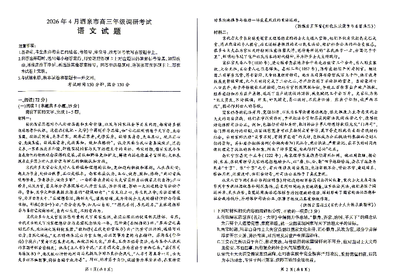 2026年4月酒泉市高三年级调研考试 语文.pdf