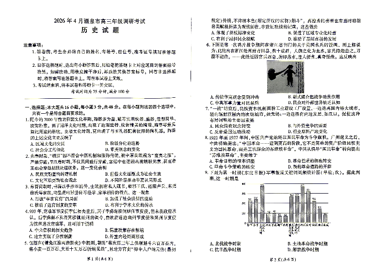 2026年4月酒泉市高三年级调研考试 历史.pdf