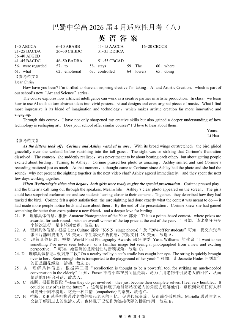 巴蜀中学2026届高考适应性月考卷(八)英语答案.pdf