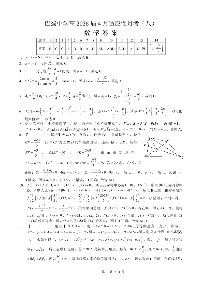 巴蜀中学2026届高考适应性月考卷(八)数学答案.pdf