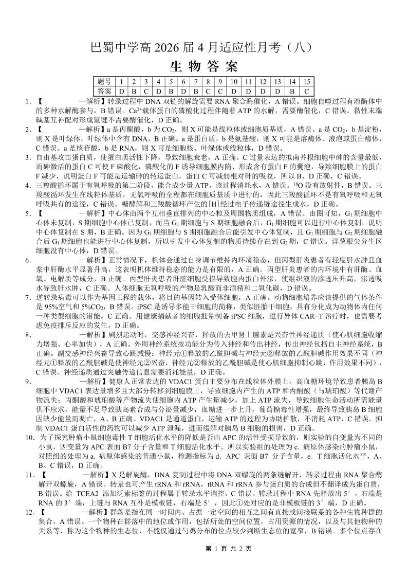 巴蜀中学2026届高考适应性月考卷(八)生物答案.pdf
