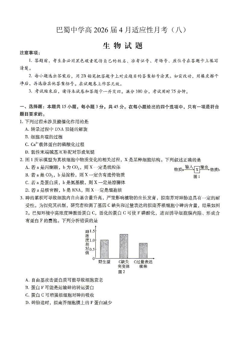 巴蜀中学2026届高考适应性月考卷(八)生物.pdf
